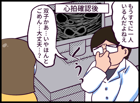 診察、5w3dでGS(胎嚢)が見え、6w3dで2つの心拍が確認されました。